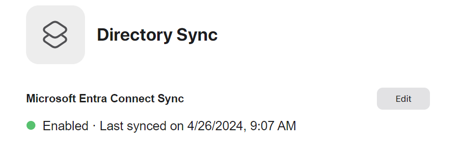 - Nyissuk meg a Dyrectory Sync beállításait, majd kattintsunk az “Edit” gombra a Microsoft Entra Connect Sync mellett: