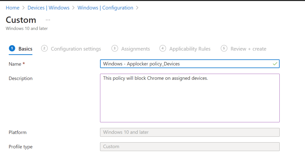 Az Intune policy létrehozásához szükségünk vagy egy XML formátumban definiált AppLocker policyra és egy Oma-URI-ra.