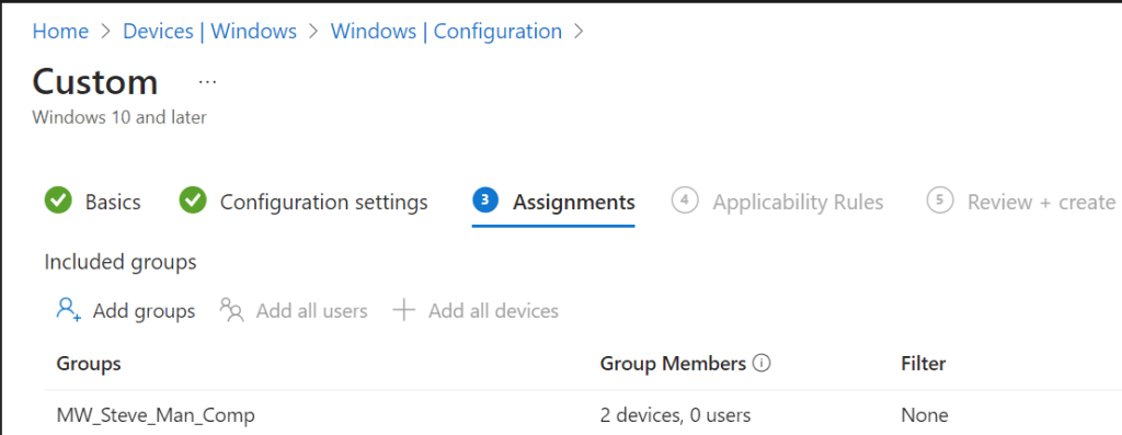 A policy készen is áll deploymentre, már csak assignolnunk kell a kívánt eszköz csoportra: