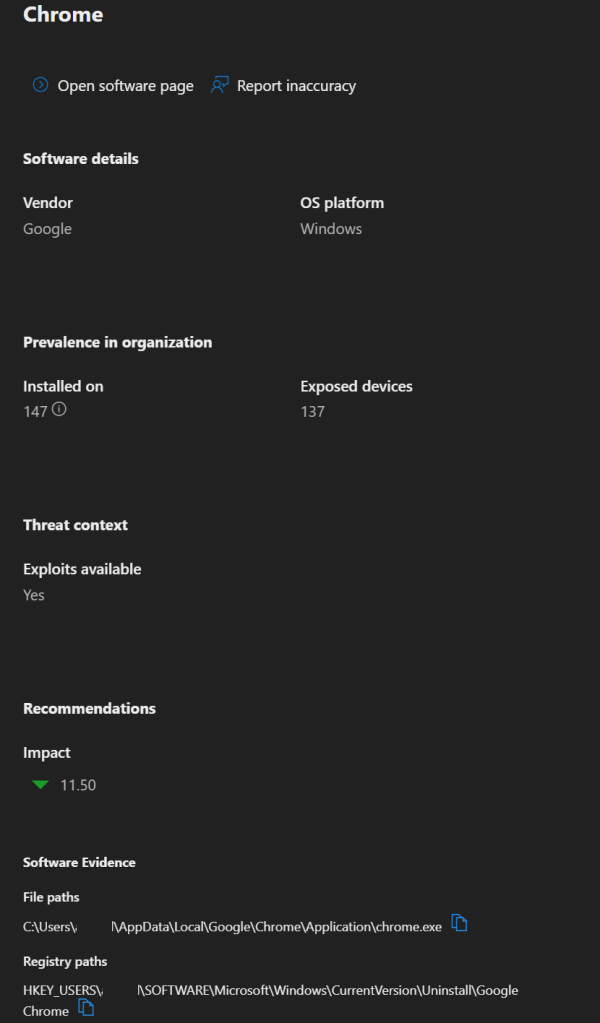 Az útvonal megadásában segítséget nyújthat a Defender ahol az Inventories szekcióban megtalálunk minden applikációt ami a klienseken telepítve van, innen könnyedén ki tudjuk nyerni az útvonalat: