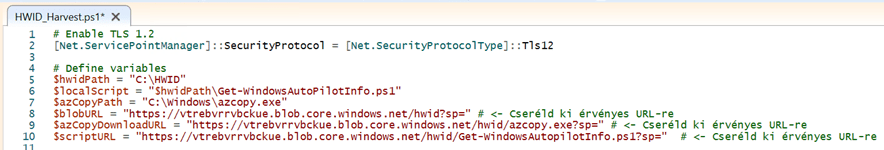 $scriptURL = "https://vtrebvrrvbcku.blob.core.windows.net/hwid/Get-WindowsAutopilotInfo.ps1?sp=..." # <- Cseréld ki érvényes URL-re