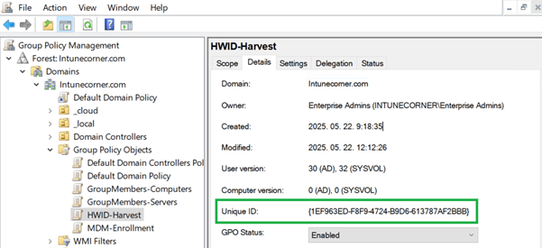 – A share címe általában így képződik: ‘Domain\SysVol\domain\policies\{Policy Unique ID}\Users\scripts’. A Policy ID-ját a GPO ‘Details’ oldalán találjuk: