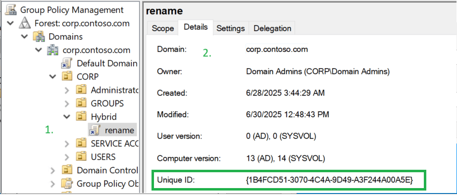 $targetOUdn = "OU=Hybrid,OU=CORP,DC=corp,DC=contoso,DC=com" # Cél OU DN