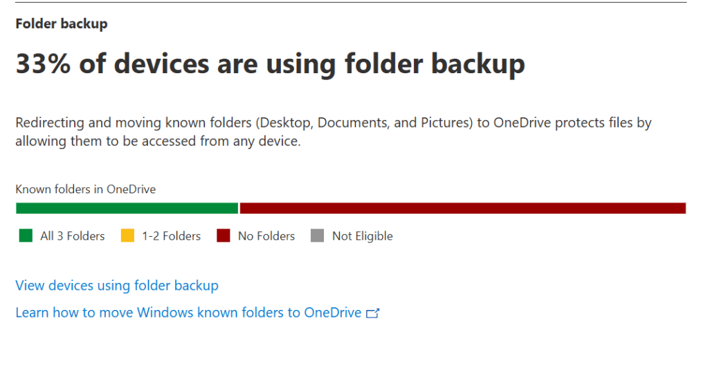 Manapság a többség rendelkezik olyan license-el ami tartalmazza a OneDrive for Business-t is. Mégis sokan nem kezelik központi policy-val a OneDrive beállításait, így a felhasználóra bízzák, hogy miként használja a OneDrive-ot. Érdemes bekapcsolni a Known Folder Move-ot (KFM) a felhasználóknál, hiszen minden licenselt user 1TB OneDrive storage-el rendelkezik!