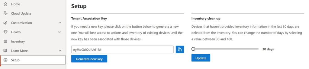 Természetesen a Tenant ID és a Tenant Association Key-t fontos megadni! A Tenant Association Key-t a config.office.com-on találod a “Setup” menü-ben: