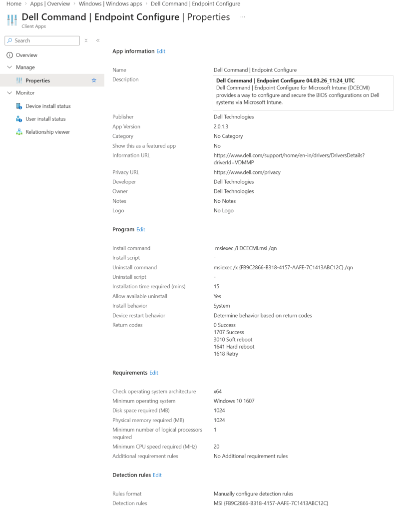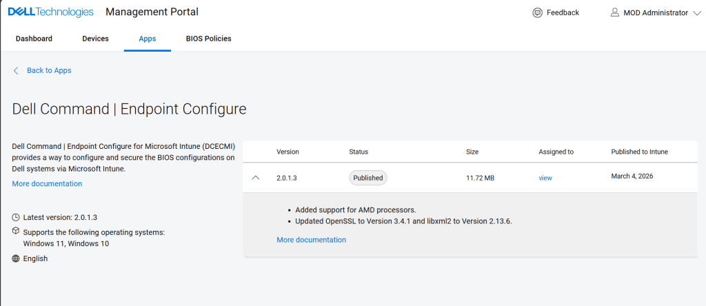 Download link: Dell Command | Endpoint Configure for Microsoft Intune