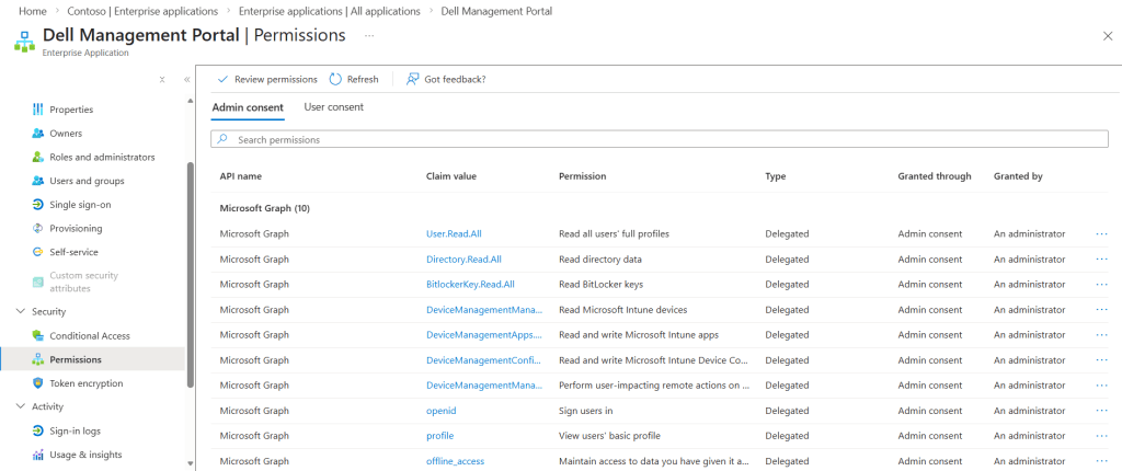 Ha figyelmesen megnézzük a fenti képet, látjuk, hogy az enterprise app-nak joga van alkalmazásokat létrehozni az Intune-ban. Ez azért jó, mert így nem kell a Dell Endpoint Configure appot manuálisan .intunewin-be csomagolni, egyszerűen a partner portálról deployoljuk az alkalmazást. (Én már publikáltam az alkalmazást, ezért nálam már nem látszik a publish gomb, de a “published to Intune” oszlopban fogod találni.)