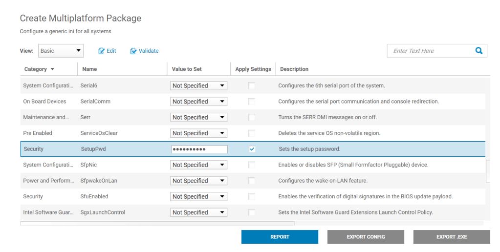 Abban az esetben ha azonos jelszót szeretnénk minden gépre vagy egy adott gépcsoportra, keressük meg a listában a SetupPWD beállítást és adjuk meg a használni kívánt jelszót :