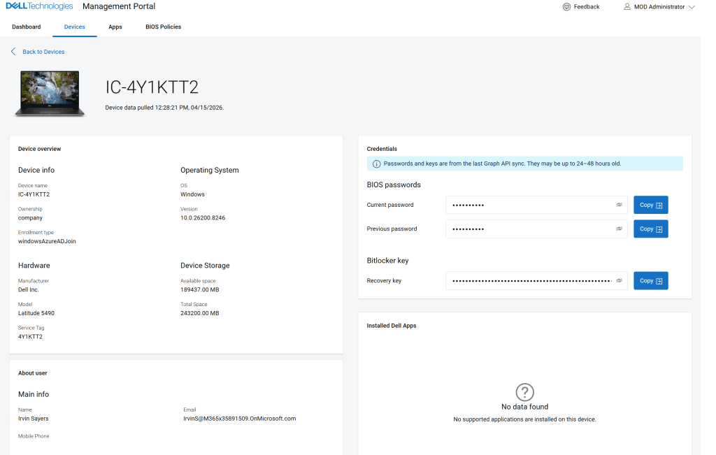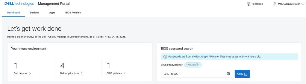 A Dell partner portálján (https://manage.dell.com/) egy felületen látjuk az összes gépet, a BIOS és BitLocker jelszavukat, BIOS config policy-kat.