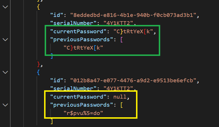 Graph Explorer-ben ha lekérdezem a gépekhez tartozó jelszót, látszik is, hogy nem ismeri az előző jelszót, hiszen más volt a Device ID-ja.