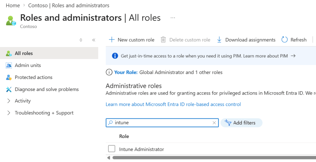 Ezen felül szüksége lesz az adminunknak egy “Intune Administrator” RBAC Role-ra is.