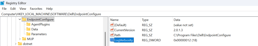 - Registry path: HKLM\Software\Dell\EndpointConfigure\