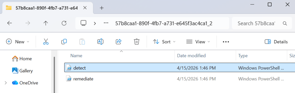 Ezen felül egy remediation scriptet is letölt a “C:\Windows\IMECache\HealthScripts\’PolicyID’” mappába.